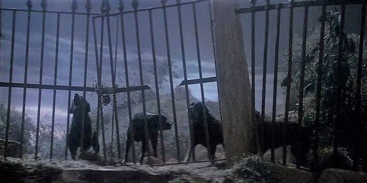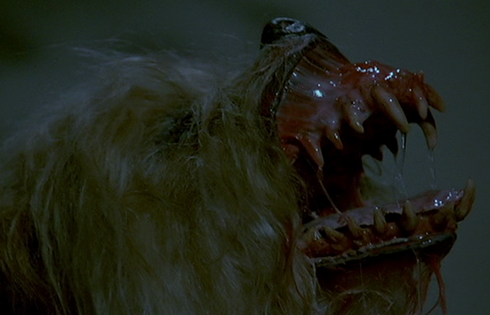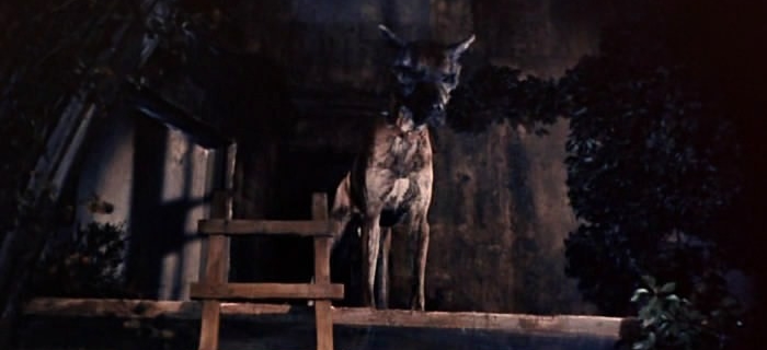 Lucio Fulci foi além em “Terror nas Trevas” ao criar uma das obras mais violentas e perturbadoras do cinema de terror italiano, aqui, o horror não dá trégua nem para o melhor amigo do homem. Em uma das cenas cruciais do longa, Emily, uma mulher com deficiência visual, é perseguida pelos mortos que escaparam por um dos portais do inferno. Para protegê-la, seu fiel cão guia ataca os infelizes finados, mas quando retorna, Dickie parte para cima de Emily rasgando a sua garganta em uma cena grotesca regada a sangue.