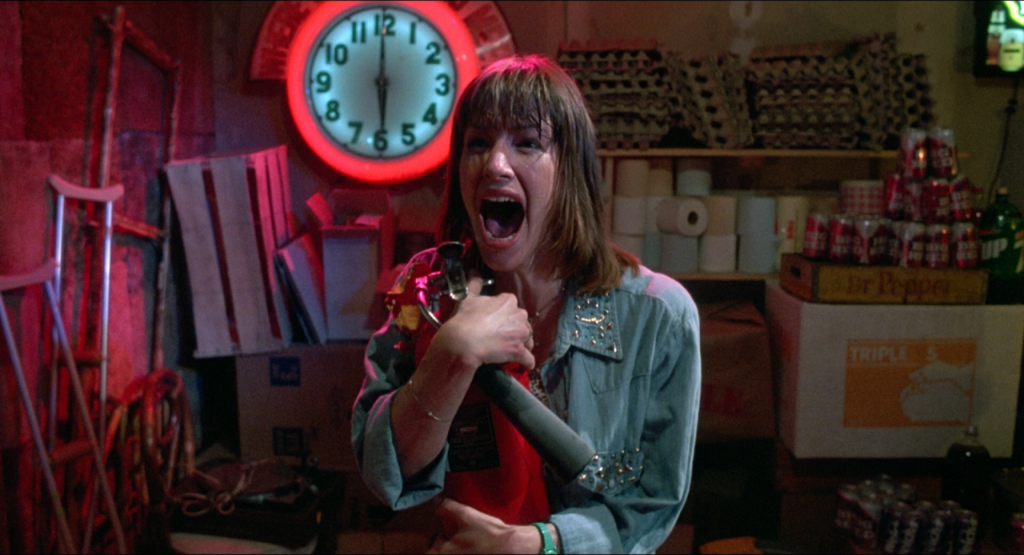 Com o roteiro de L.M. Carson e os efeitos especiais de Tom Savini, o mago da maquiagem dos filmes de terror, “O Massacre da Serra Elétrica 2” dividiu opiniões, sendo amado ou odiado pelos fãs. O longa se posicionou como uma comédia de humor sombrio, aliás, tão sombrio, que o diretor Mick Garris cunhou o termo “humor vermelho” para descrever o temperamento de Hooper. A sequência tem início após um salto temporal de 12 anos. Os eventos passados são explicados logo no começo detalhando os fatos pela ótica de Sally, a única sobrevivente do massacre anterior. Após uma investigação, nada é encontrado no local indicado. O tio da vítima, vivido por Denis Hopper, decide procurar por conta própria a família de canibais degenerados em busca de vingança.