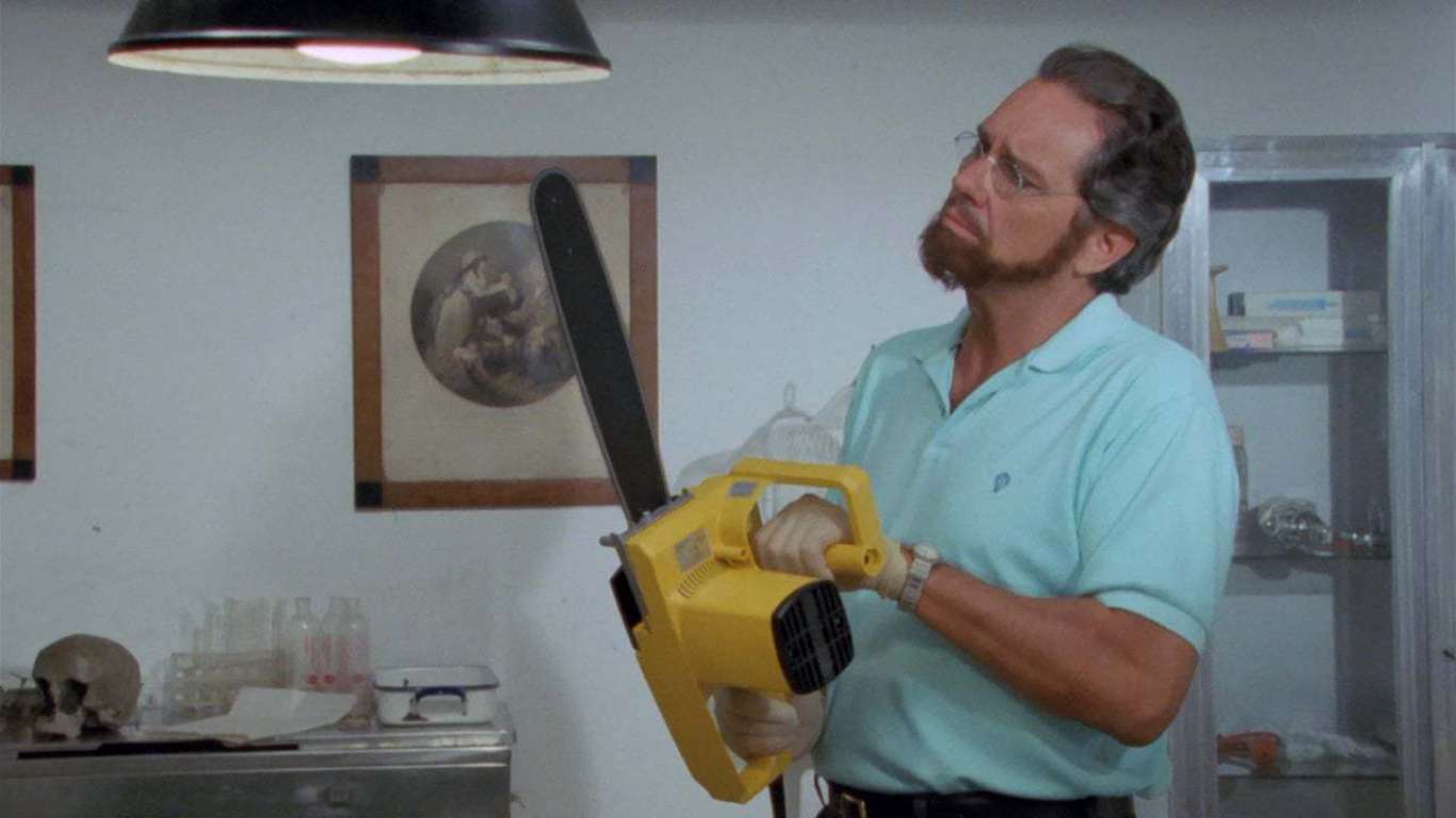 Também dirigido por Lucio Fulci, o maestro do gore italiano, “Quando Alice Quebrou o Espelho” conta a história de Lester Parson, um sociopata carismático e astuto que mata viúvas ricas em busca de dinheiro fácil e carne fresca. Viciado em apostas, Parson escolhe suas vítimas através de anúncios publicados pelas solitárias mulheres em busca de um novo amor. Para se livrar dos corpos de suas amantes, o assassino usa uma motosserra e um moedor de carne. Regado à sangue, canibalismo e violência, o longa faz parte do projeto “Os Mestres do Suspense” voltado para o mercado de mídia física italiana. Oito filmes foram lançados entre 1988 e 1990, cada um desenvolvido por um diretor italiano diferente, com exceção de Fulci, que dirigiu dois filmes: “Quando Alice Quebrou o Espelho” e “Fantasmas de Sodoma”.