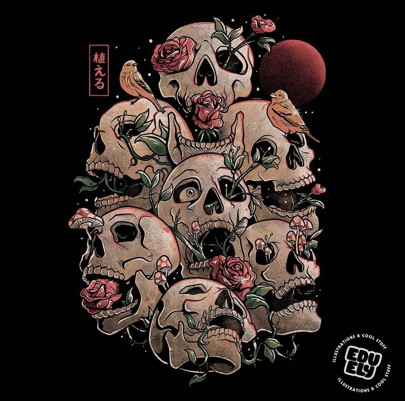 Eduardo criou então a EduEly, um estúdio criativo onde produz ilustrações, design gráfico, t-shirts e outros produtos descolados, “desde coisinhas fofinhas até umas caveiras macabras”, diz.