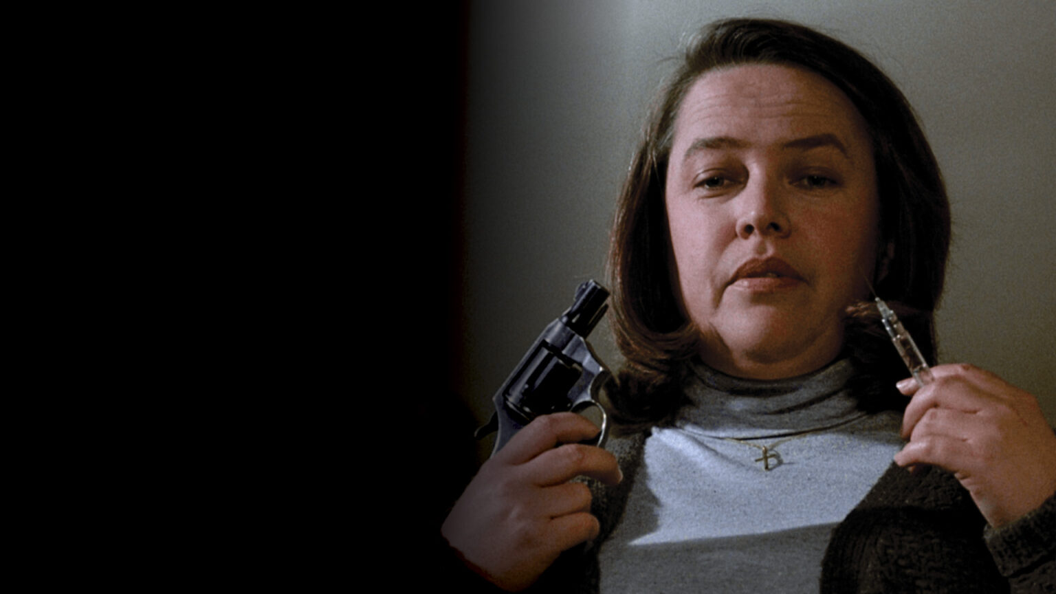 Com a atuação brilhante de Kathy Bates (que acabou lhe rendendo o Oscar de Melhor Atriz), o filme acompanha a solitária Annie Wilkes, uma fã incondicional do escritor Paul Sheldon, que recentemente anunciou o encerramento da série de livros preferida de Annie. Por ironia do destino, o autor sofre um acidente e acaba socorrido por Annie. Ela vê na situação a oportunidade perfeita de fazê-lo dar continuidade às suas histórias. Baseado na obra de Stephen King, a produção retrata os perigos do fanatismo misturando terror psicológico, tensão e ambientes claustrofóbicos, elementos suportados por personagens complexos e bem construídos. Além de Bates e James Caan, que interpreta o escritor, outros dois nomes se destacam: o do roteirista William Goldman e do diretor Rob Reiner. Ambos reuniram o essencial da história de King em uma das melhores adaptações já feitas para o cinema dos livros do autor. O roteiro fiel conseguiu construir uma narrativa envolvente responsável por causar no espectador uma sensação de desconforto antes mesmo do conflito principal ser apresentado.