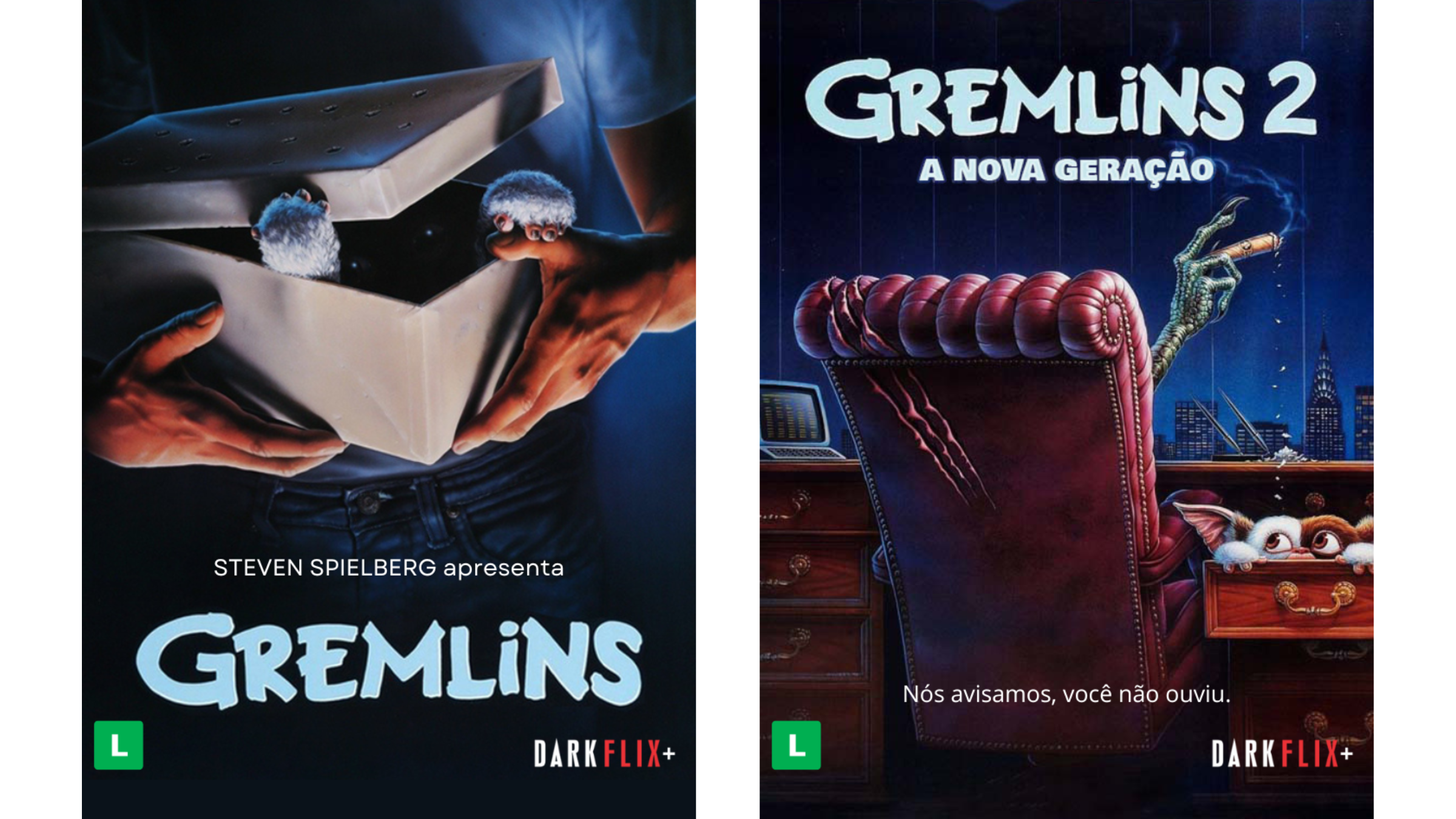 E se você também é fã dos filmes, temos uma ótima notícia, os dois longas originais estão disponíveis na Darkflix+. Ótima sugestão para quem quer revisitar a magia (e o caos) das criaturinhas, relembrar as cenas icônicas, prestar atenção nos detalhes que podem servir de pistas e, claro, preparar-se para o retorno de Gizmo e seus incontroláveis companheiros.